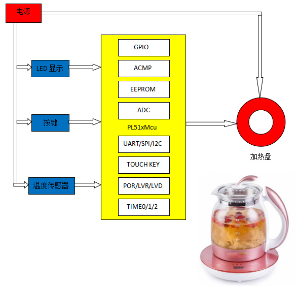 随着人们生活水平的提高,喜欢养生的人越来越多,jcjc5500公海微电子推出高性价比养生壶控制解决方案,方案具有温度、预约时间、烹饪功能任意选择、外围电路简洁等优点,提供完整解决方案。